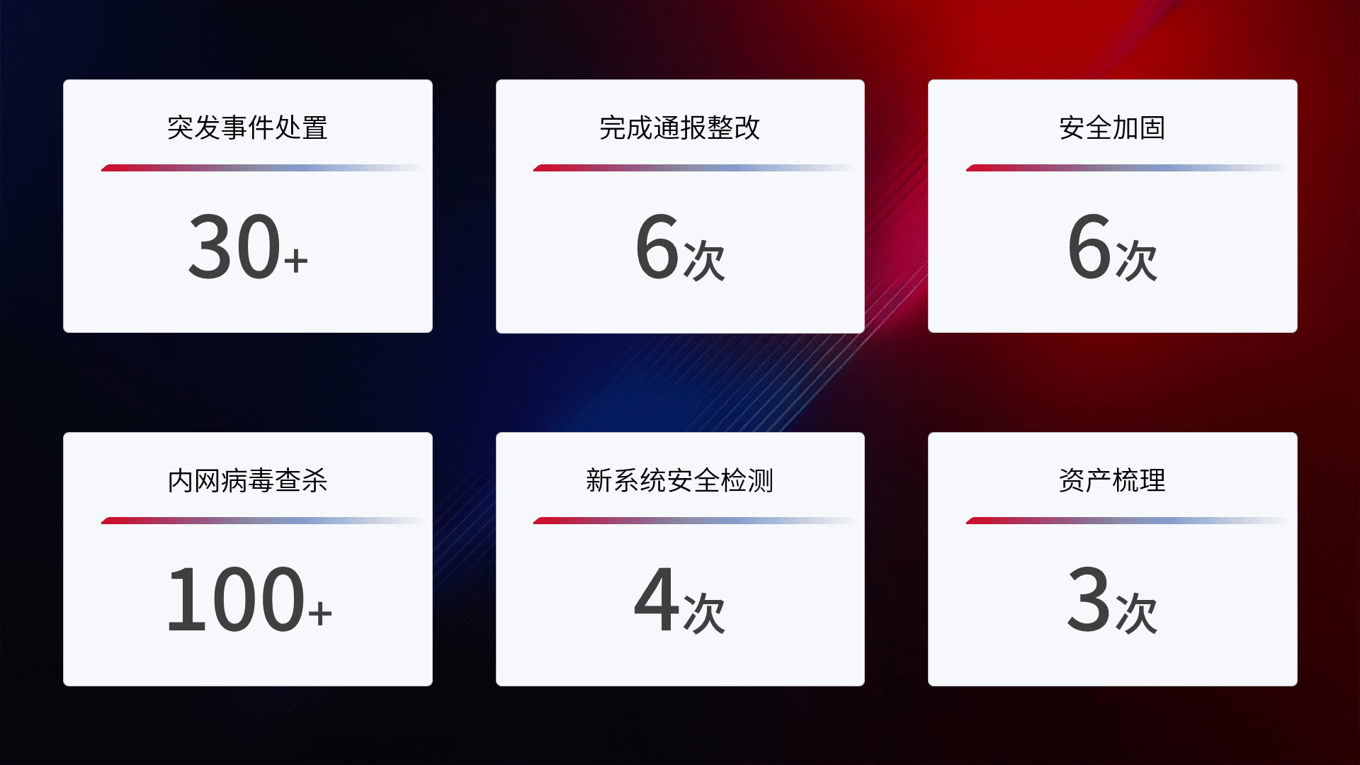 根据客户需求定制整改方案,,强化应急演练,,提升网络安全事件应对能力。。。。
